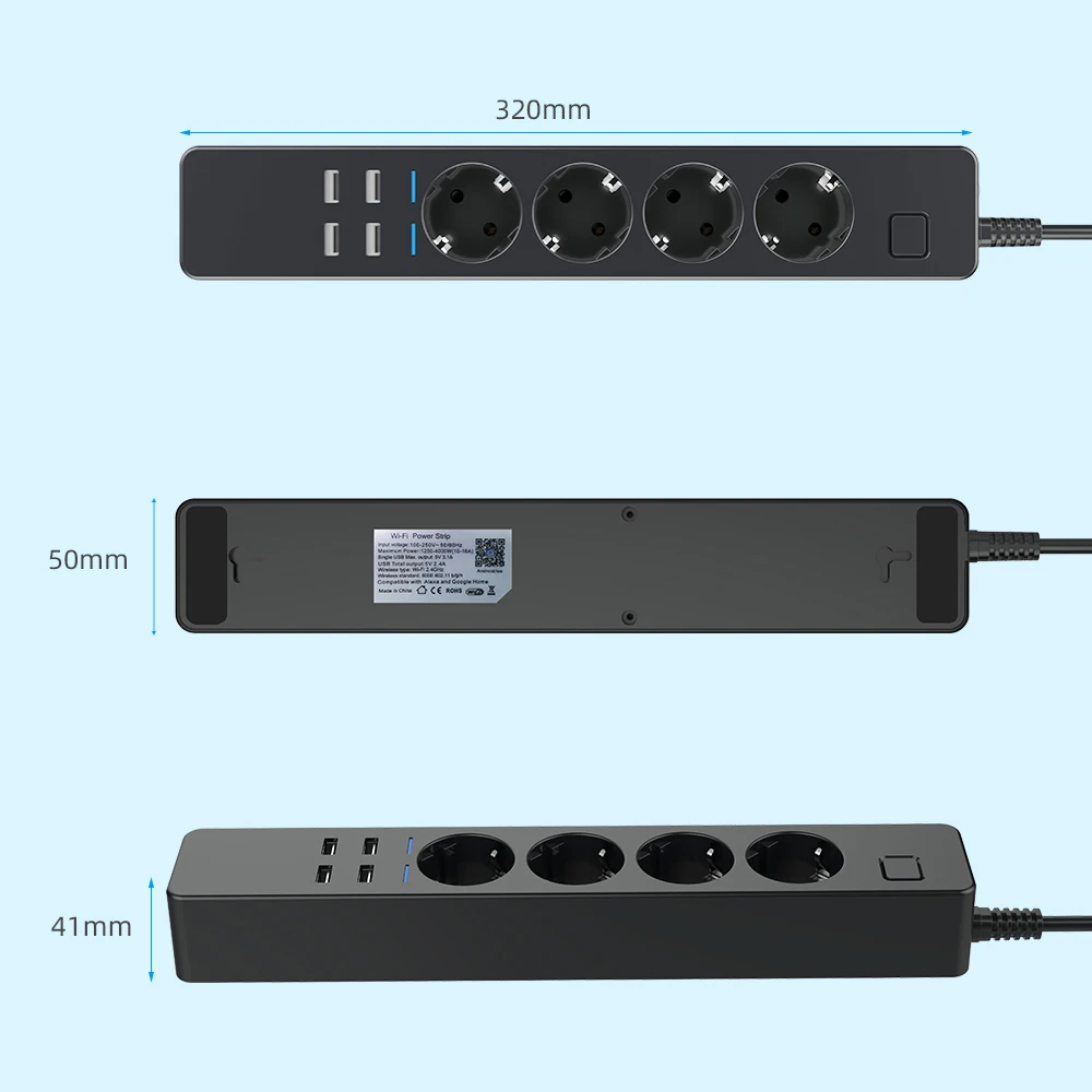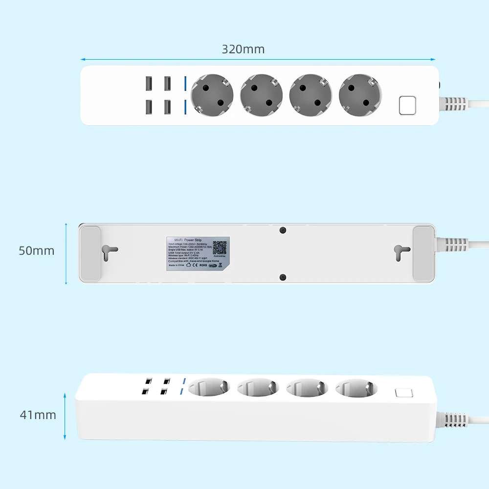 YITOM Smart Power Strip EU is an all-in-one solution for powering and controlling multiple devices in your home. With 4 EU outlets and 4 USB charging ports, it lets you connect everything from laptops and lamps to smartphones and tablets in one place. Through the companion app, you can remotely control each outlet, set timers, and create smart routines for effortless automation. It’s fully compatible with Alexa and Google Home Assistant, allowing hands-free voice control for maximum convenience. Designed with safety and efficiency in mind, this power strip helps save energy while keeping your devices organized and charged. Sleek and versatile, it’s perfect for home offices, living rooms, or entertainment setups.